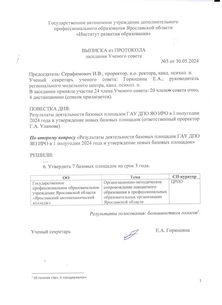 Выписка №5 от 30.05.2024 из Протокола заседания Ученого совета